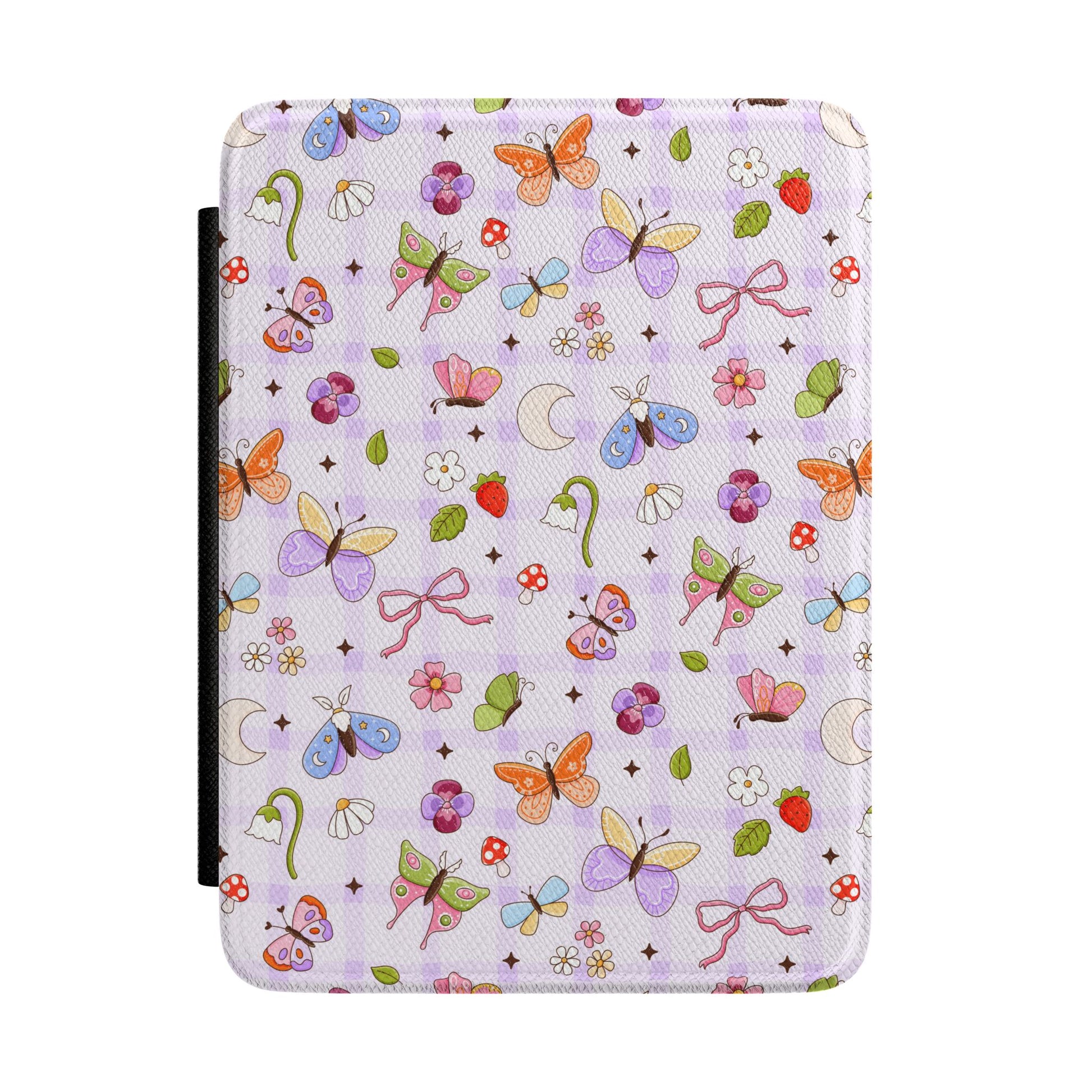 Soft and whimsical, this Kindle case wraps your Paperwhite in a playful garden of butterflies, bows, tiny moons and scattered flowers. The satin-finished PU leather print has a delicate sheen that lightens a reading nook and keeps your device looking cheerful. Inside, a velvety fabric lining cradles the screen while a built-in hand strap makes one-handed scrolling and page-turning comfortable. A magnetic front lid closes securely and wakes or sleeps compatible Kindles, so your device is protected between chapters. It slips on easily and stays sleek — a little everyday delight for readers who like their tech to feel tender and bright.